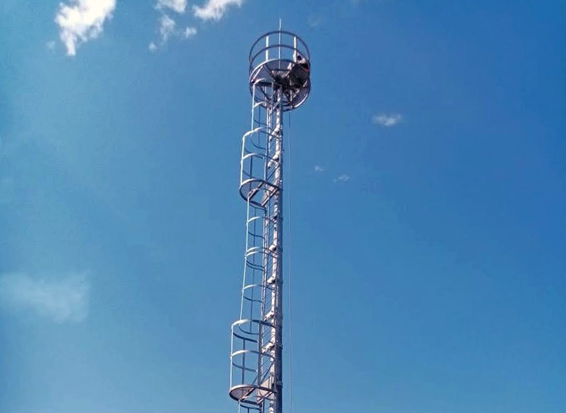 Установленная мачта обеспечивает нормативное освещение территории КНС, достаточное для безопасной работы персонала и обслуживания технологического оборудования в темное время суток. Наличие стационарной лестницы и обслуживающей площадки упрощает доступ к оборудованию и проведение регламентных работ.